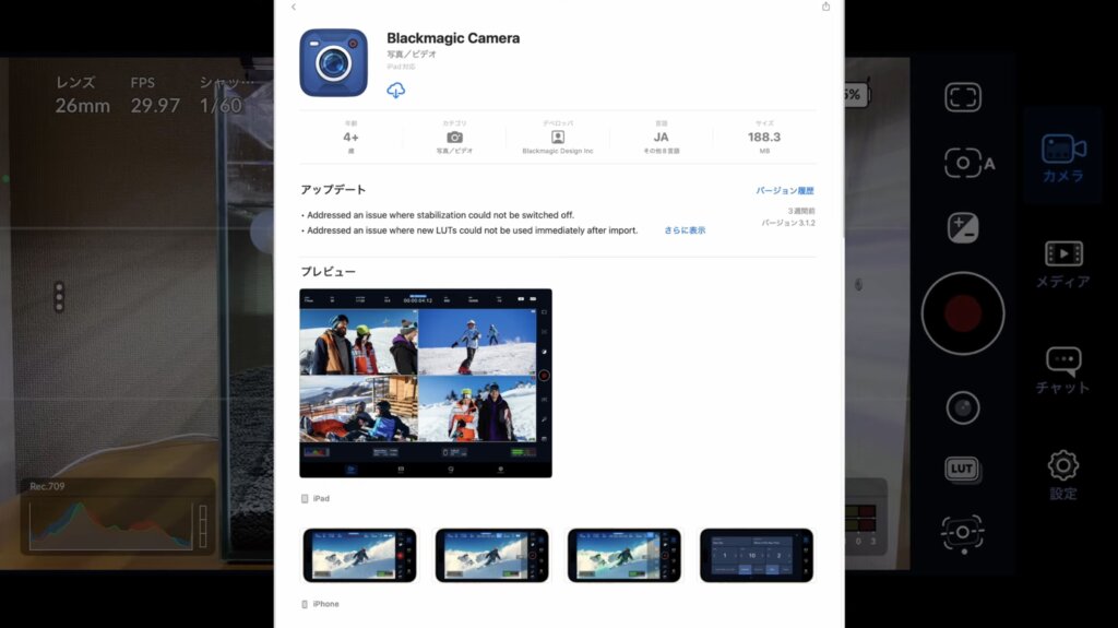 そこで使うのが「Blackmagic Camera(ブラックマジックカメラ)」アプリ。