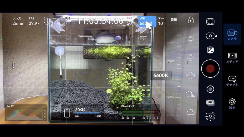 実は自分、水槽みたいな撮影ではiPhoneの純正カメラアプリをあまり使いません。理由はシンプルで、ホワイトバランス(WB)が狂いやすいからです。