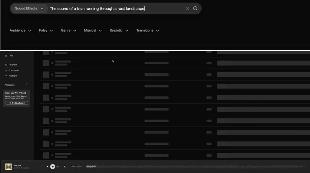 「田園風景の中走る電車の車内音」と入力すれば、車内録音らしい音がすぐに見つかるレベル。