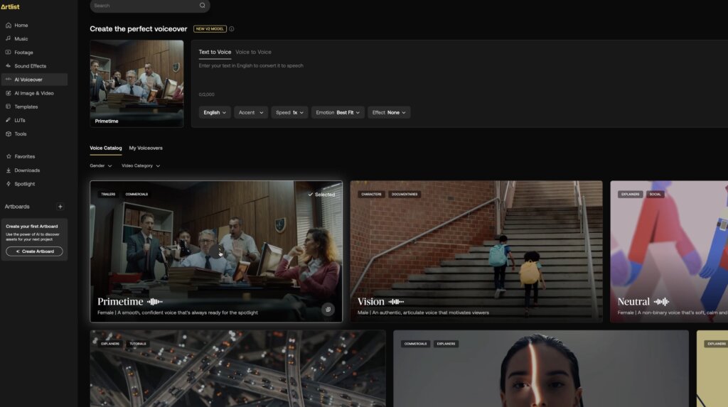 ArtlistのAIボイスオーバーは、映像に合わせた自然なナレーションが作れるのが魅力。