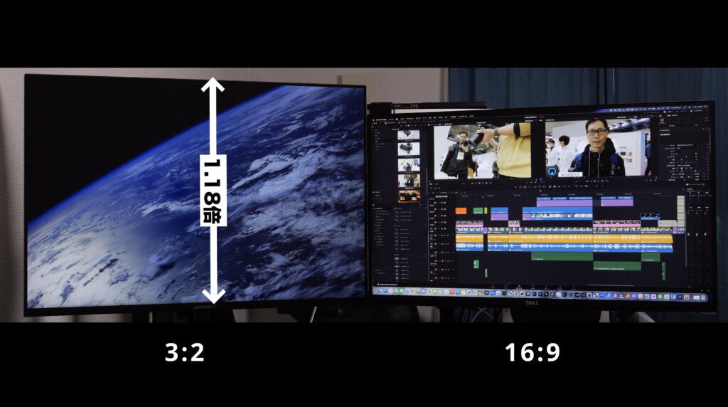 3:2モニターは、一般的な4Kモニターより表示領域が約1.18倍広いと言われています。