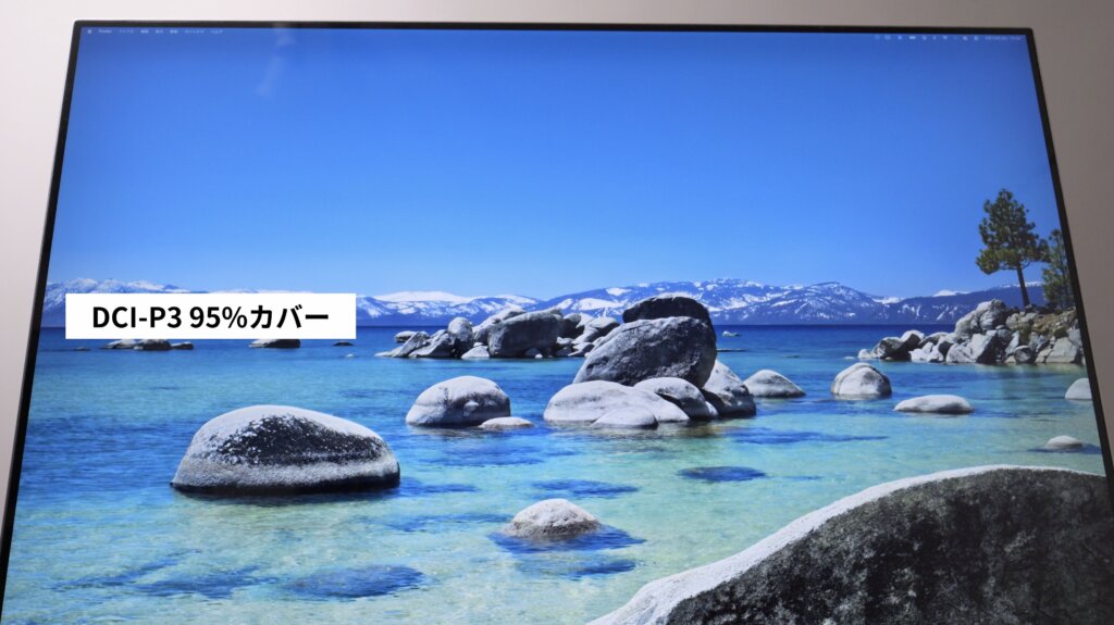 DCI-P3を95%カバーしているので、ある程度の色再現性は期待できそうでしたが、やはり実際に見てみないと分からない部分でもあります。