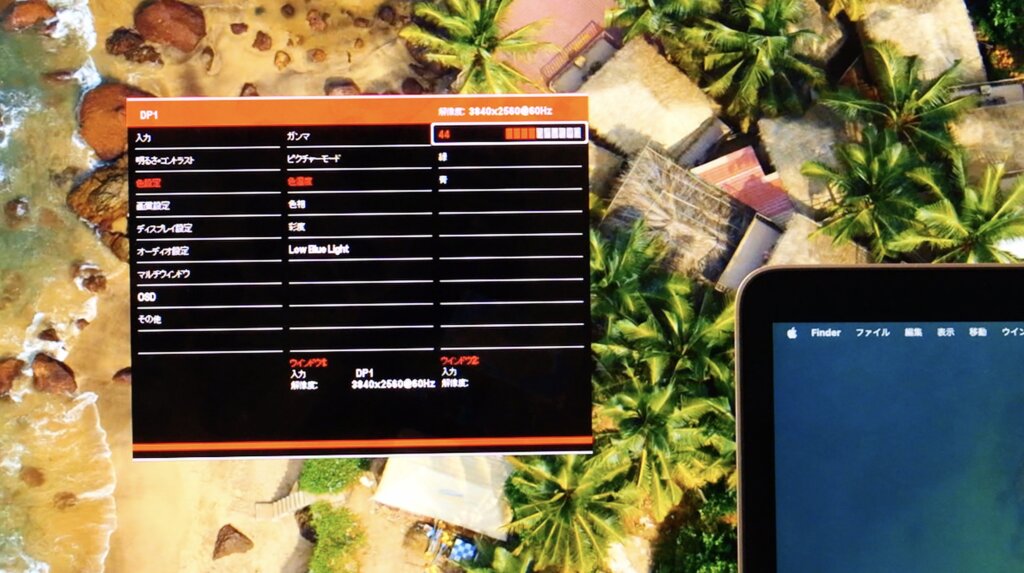 ・モニター側では、色温度をユーザー設定にしてRGBを個別に調整しました。