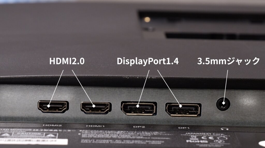 DisplayPort 1.4が2つ、HDMI 2.0が2つ、そして3.5mmジャックを搭載しています。