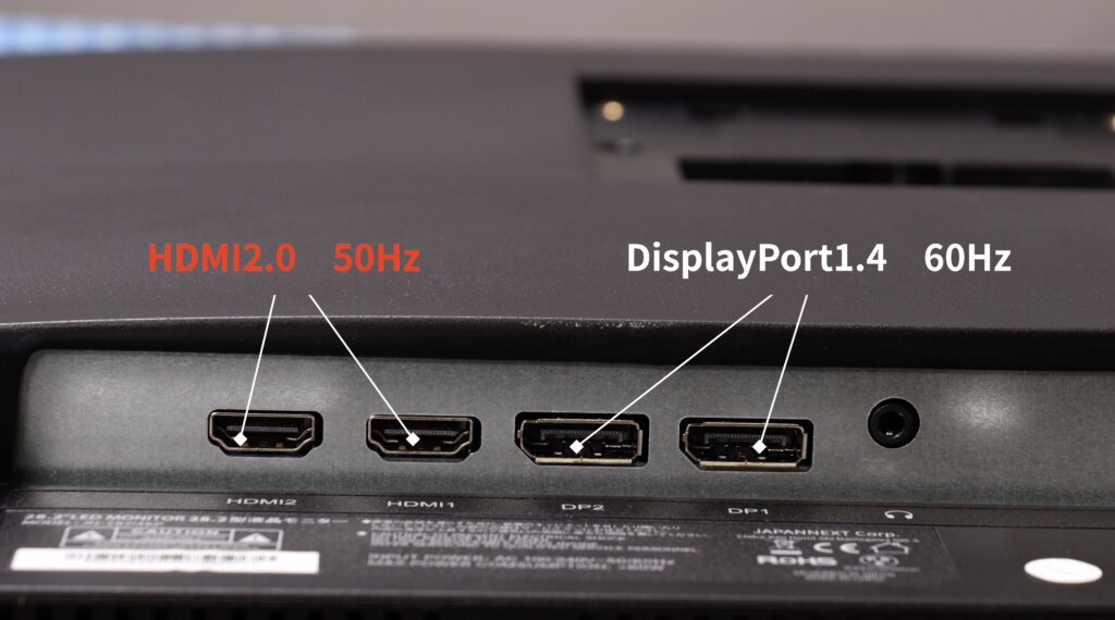 また、最大リフレッシュレートは60Hzですが、60Hzで使うにはDisplayPort接続が必要です。