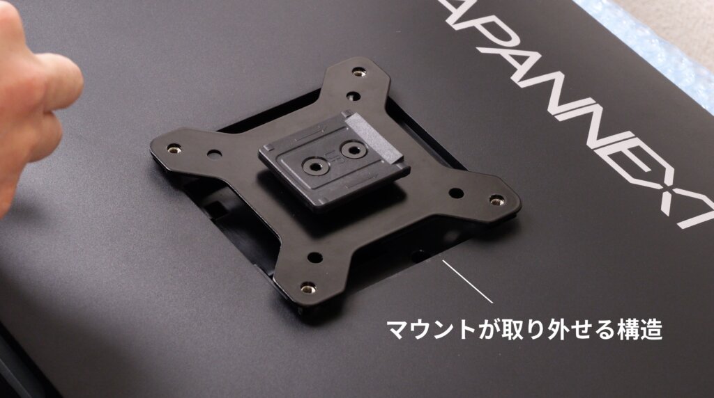 実際に4K Plusモニターを取り付けてみて良かったのは、モニター側にVESAマウントのアダプターを付けられるところです。