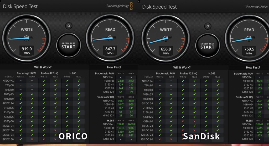 速度比較:ORICO C10 vs SanDisk Extreme Portable SSD V2