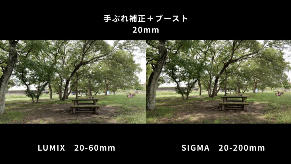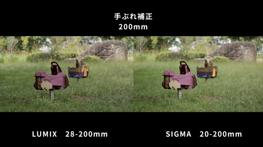 一方LUMIX 28-200mm はレンズ内手ぶれ補正対応。