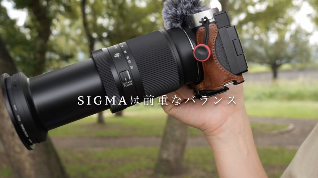 手に持つと差は少ないですが、S9のような小型ボディだとSIGMAは前側が重くなり、片手撮影では負担が大きくなります。