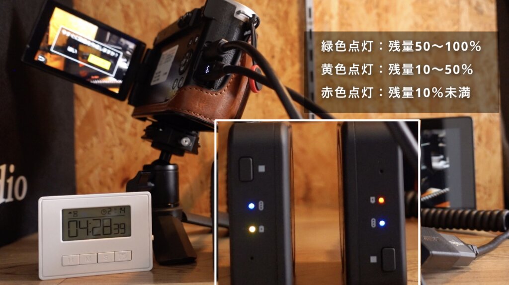 LEDインジケーターでバッテリー残量を3段階表示してくれるので安心です。